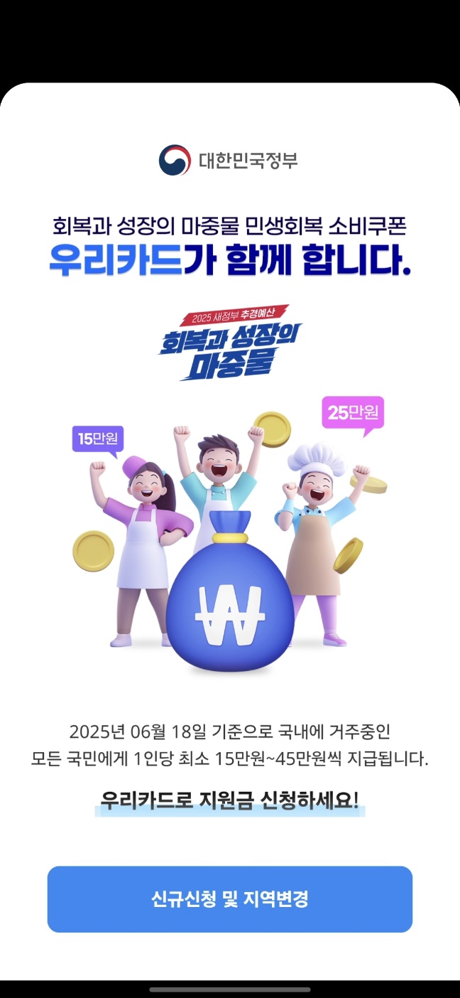 7월 21일부터 시작되는 정부의 1차 민생회복 소비쿠폰 지급이 드디어 확정되었습니다. 전국민 대상이며, 소득 수준에 따라 최대 45만 원까지 지급됩니다. 어디서, 어떻게 신청하는지 궁금하지 않