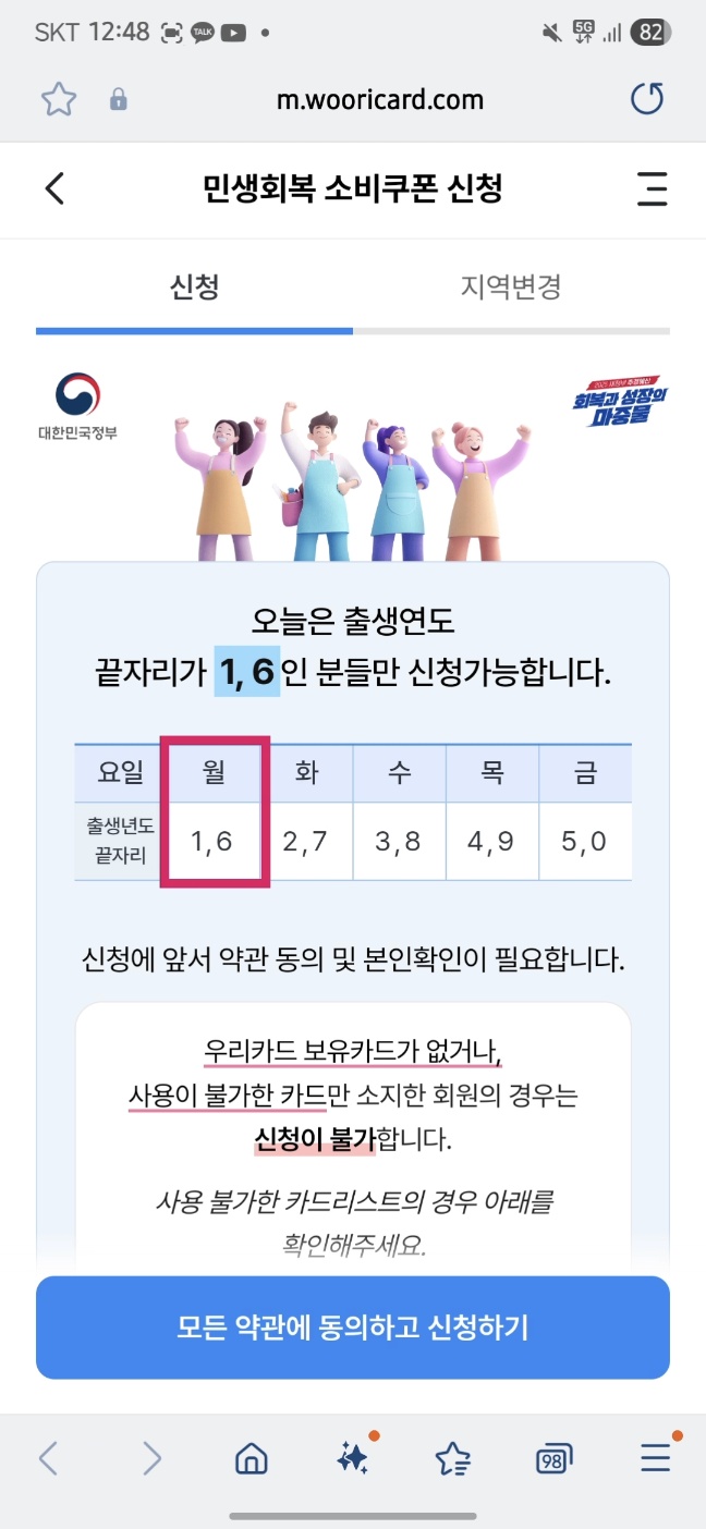 4. 출생연도 확인해주고 모든 약관에 동의하고 신청하기를 누릅니다.