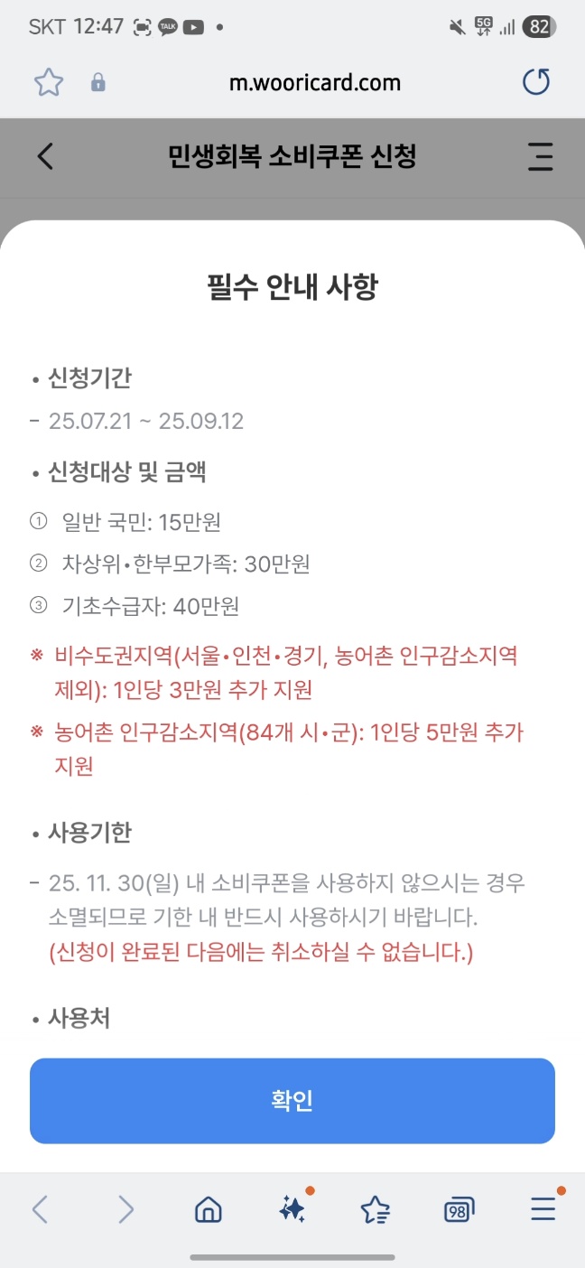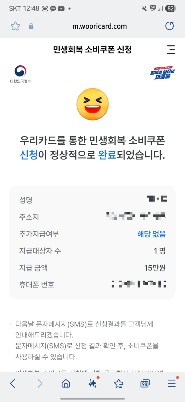 8. 신청결과는 다음날 문자로 안내해준다고 합니다. 확인 후 소비쿠폰을 사용할 수 있다고 합니다.