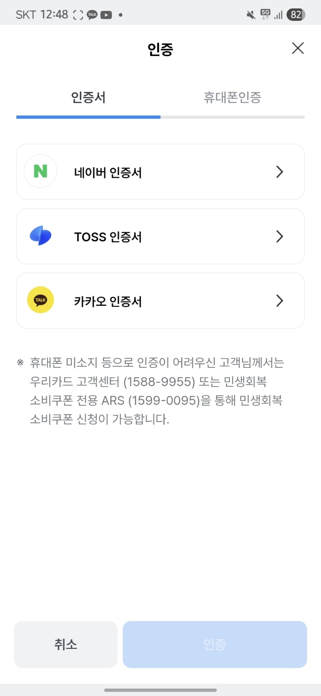 5. 인증서 또는 휴대폰인증으로 인증해줍니다.